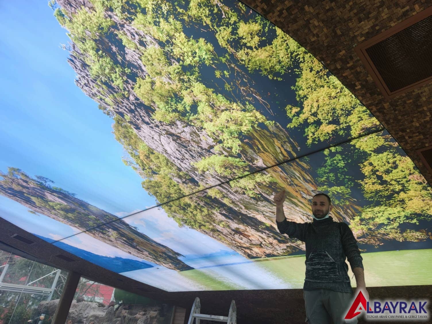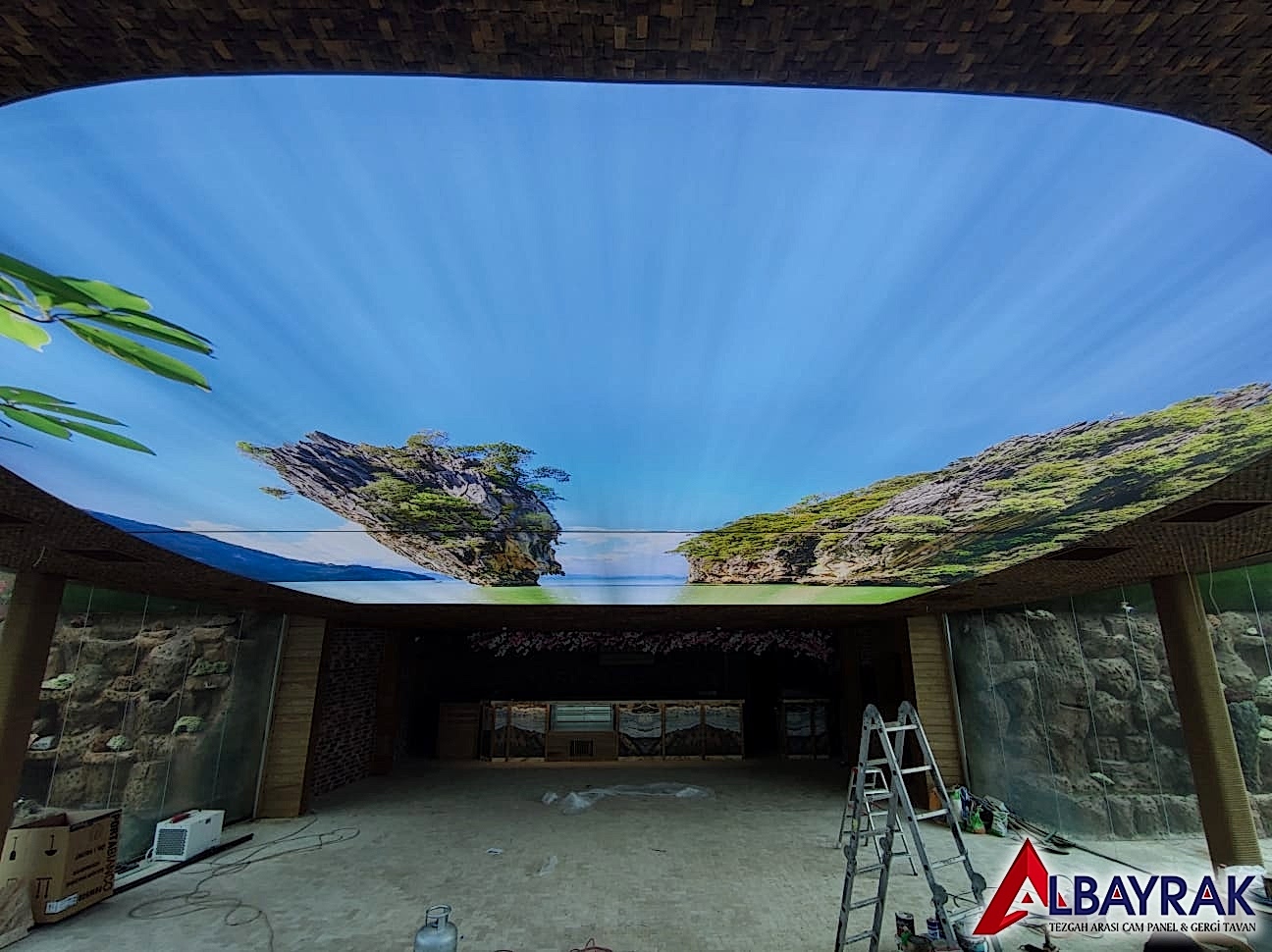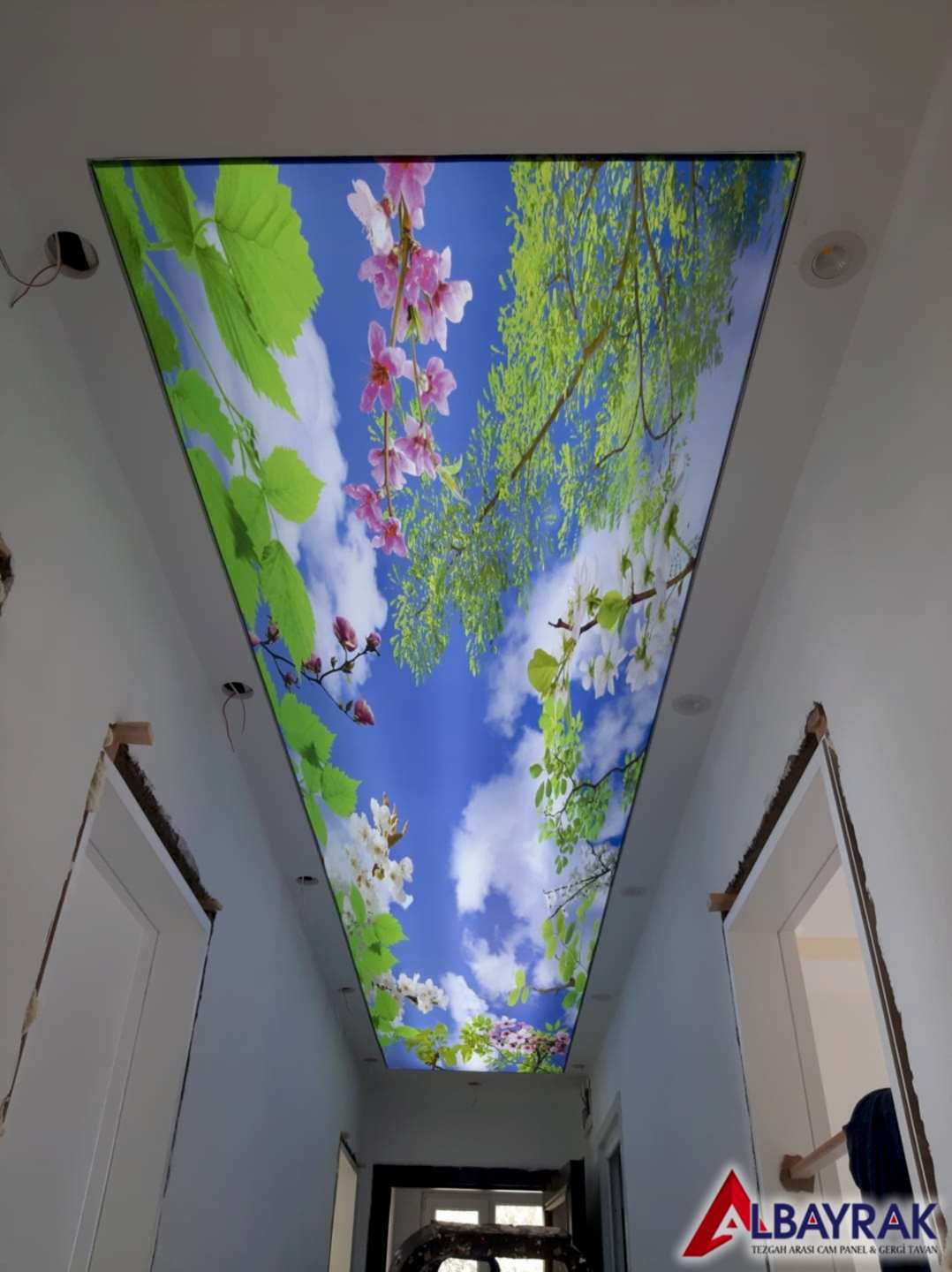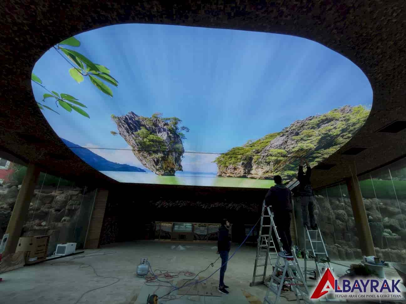 Gökyüzü Gergi Tavan yada Gökyüzü tavan olarak adland�r�lan gergi tavan çal��mas�nda bulut resimi ve mavi tonlar�n�n a��l�kl� olarak yer ald��� çal��mada milyonlarca model deste�i sunuyoruz. Gökyüzü tavan malzemelerini Türkiyenin her noktas�na ayn� gün kargoya vererek gönderim yapabiliyoruz.