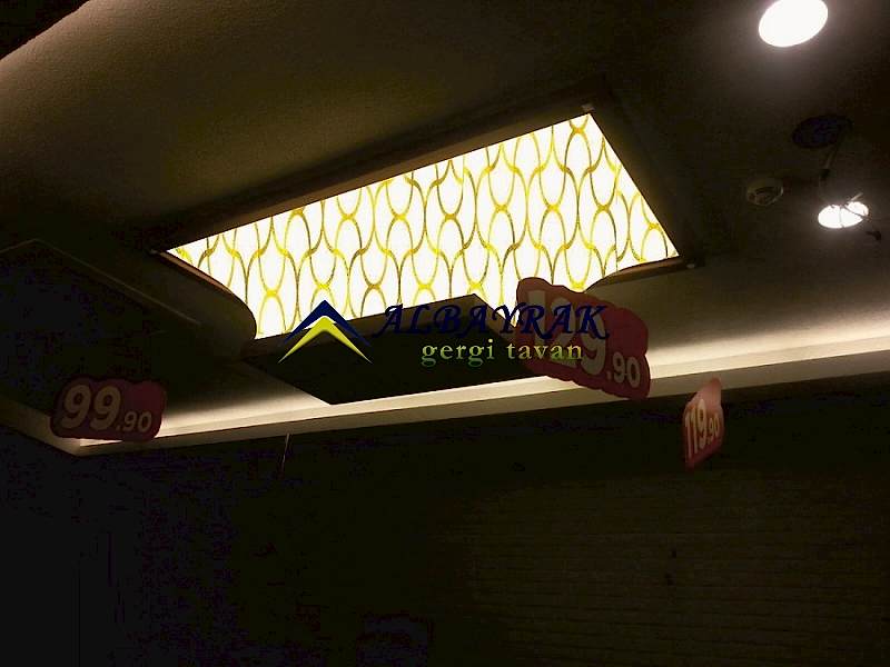 Transparan gergi tavan, bir ���k yay�c� görevi görecek �ekilde tasarlanm��t�r ve �����n %75'ine kadar�n� iletir. Do�al gün �����, LED veya floresan olsun, yar� saydam zar�n arkas�nda herhangi bir ���k kayna�� kullan�labilir. Materyal birkaç yar� saydam kaplamada mevcut oldu�undan, gün ����� veya ortam ����� efektlerinin elde edilebilece�i anlam�na gelir.